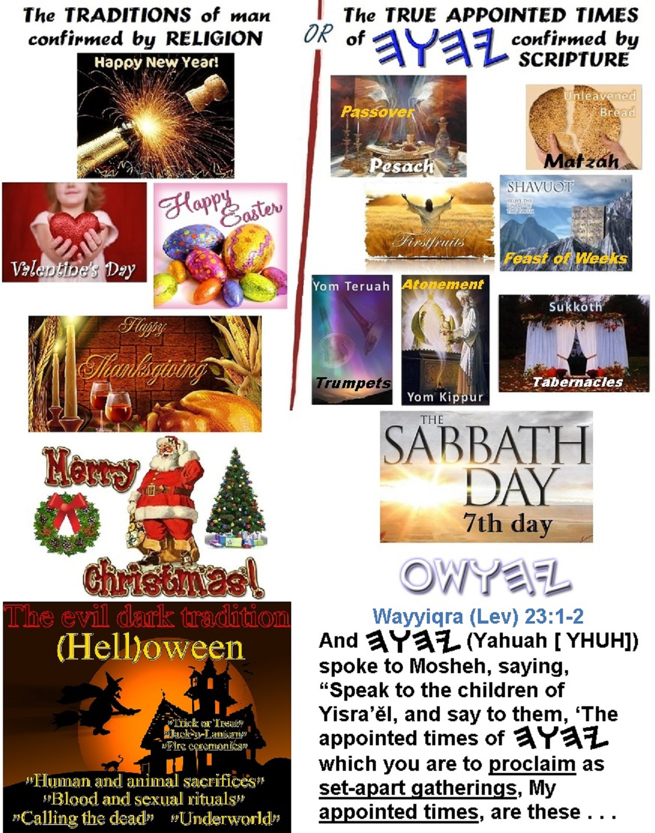 There is NO Scriptural evidence or command to observe these pagan festivals, yet we see CLEAR and PRECISE commands from Almighty Yahuah [YHUH] regarding the observance of His Appointed Times, taught in 18 Books of Scripture!